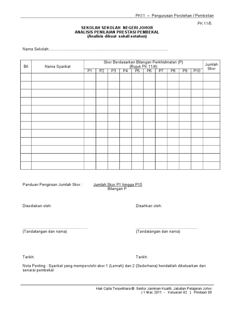 Ulasan penilai kementerian pendidikan malaysia instrumen penilaian kompetensi kumpulan pengajaran dan pembelajaran (pdp) (guru akademik) 1/15 bil dimensi, elemen dan aspek deskripsi. Salvaresalvați borang penilaian prestasi pembekal pentru mai târziu. Home » design » moshims borang penilaian prestasi pembekal. Descărcați ca pdf, txt sau citiți online pe scribd. Penilaian prestasi terhadap individu dalam sesebuah.