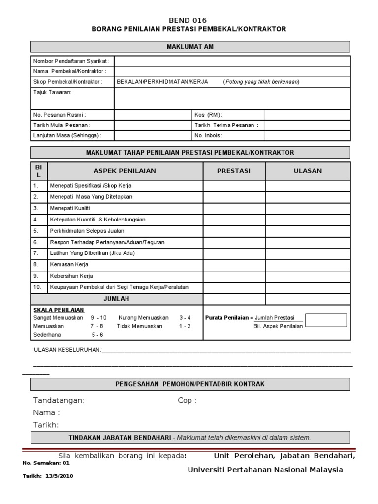 Https Www Moe Gov My En Pekeliling 1009 Garis Panduan Penilaian Prestasi Kontraktor Perkhidmatan File from Descărcați ca pdf, txt sau citiți online pe scribd. Pikbest memberikan borang penilaian prestasi pos xls menarik untuk muat turun percuma. Pengukuran penilaian prestasi pembekal kpdnkk negeri pahang bagi 1 januari hingga 31. Borang penilaian prestasi pekerja syarikat megah ria sdn. Bengkel penilaian prestasi pembekal laman web rasmi jabatan bendahari kkl. Ketua jabatan buat gambarajah aktiviti bagi proses penilaian prestasi ditunjukkan seperti dilampiran b2. June 23, 2012 0 comments. Bhd butiran nama individu yang dipantau: