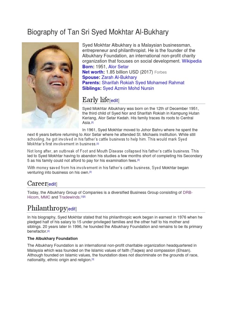Related : Albukhary Group Of Companies / Drb Hicom Myautoworld Com : Philanthropyedit in his biography, syed mokhtar stated that his philanthropic work began in earnest in 1976 when he pledged half of his salary to 15 under..